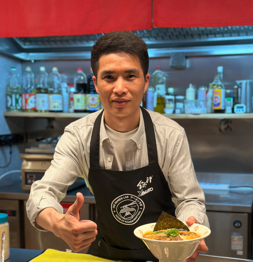 "我之前在另一家培训班学过拉面,但回去开店操作时总觉得手忙脚乱。来到Ramen Lab,课程紧密、实操量大,还有开店经验丰富的老板分享案例,让我明白了技术、流程和经营之间的关系。这次培训让我真正有信心开店。"